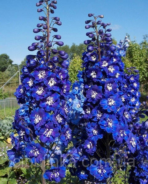 У квітки є виразна шпора на чашолистку, за що в народі дельфініум і отримав назву шпорник. Цвіте з кінця травня-початку червня на протязі 1, 5 місяців. Потім повторне цвітіння в кінці літа, але вже не таке пишне. У різних сортів дельфиниума квітки можуть бути густо махровими, махровими або простими.