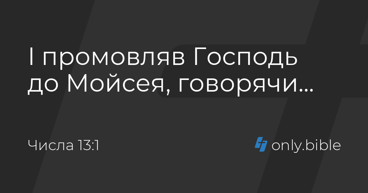 13 І промовляв Господь до Мойсея, говорячи: 2 Пошли людей, і вони розвідають ханаанський Край, що Я даю Ізраїлевим синам; пошлете по одному чоловікові від …