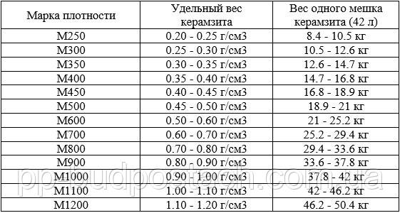 Скільки важить 1 куб керамзиту?